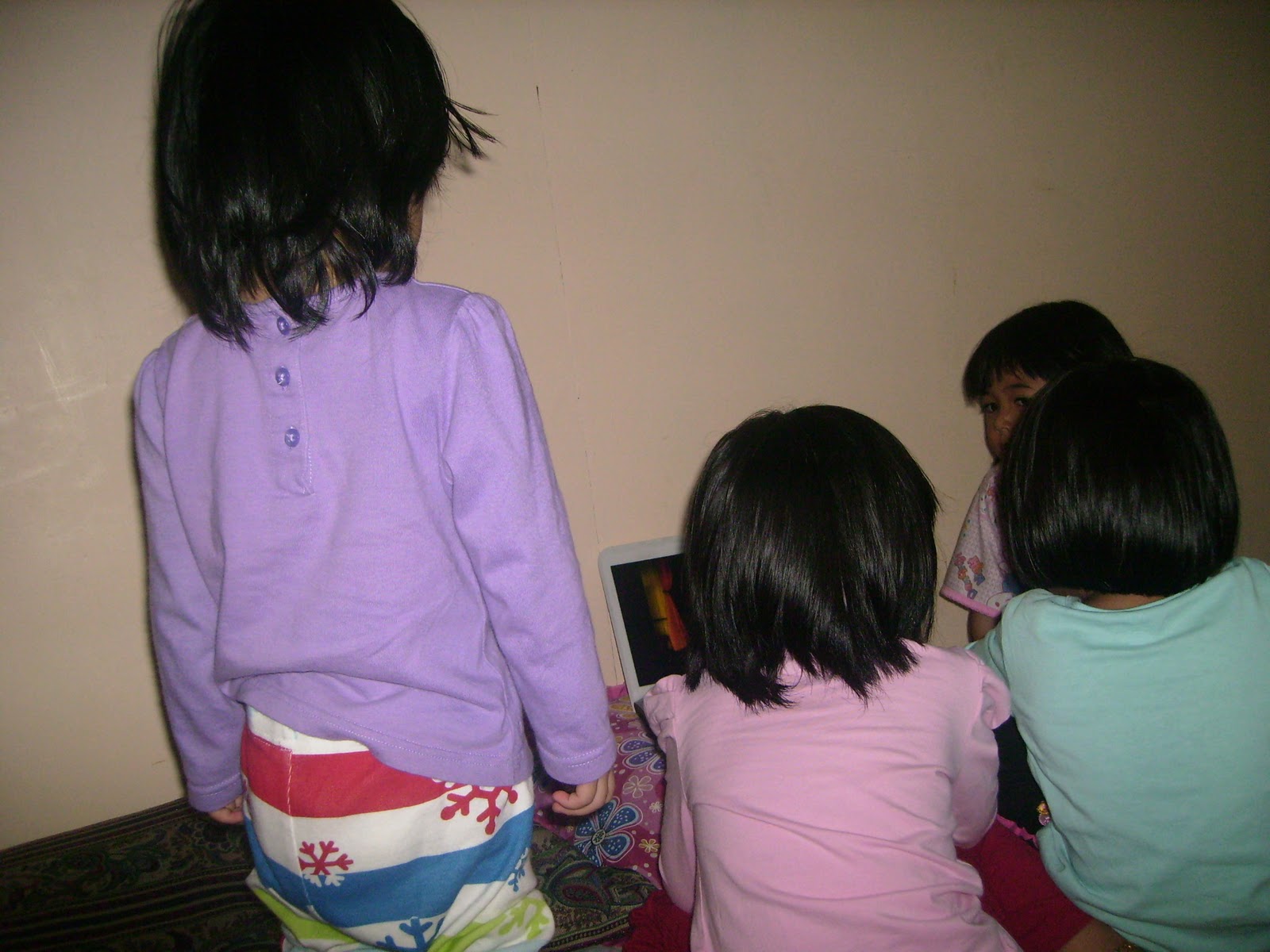 Lorr, tengok upin ipin rupanya...afterwards momma have to stop them nanti lapar ye anak-anak tak makan...hihi..when we think again and again it same with us right? Especially when we doing something that we like almost...apa lagi facebooking & blogging lar..kuikui..but what about your job?? Please please settled down your job first before doing any irrelevant act that not give a benefit & income to your company..no income, no bonus & no increment ok..chaiyok-chaiyok!! Berusahalah!! You all can do it..